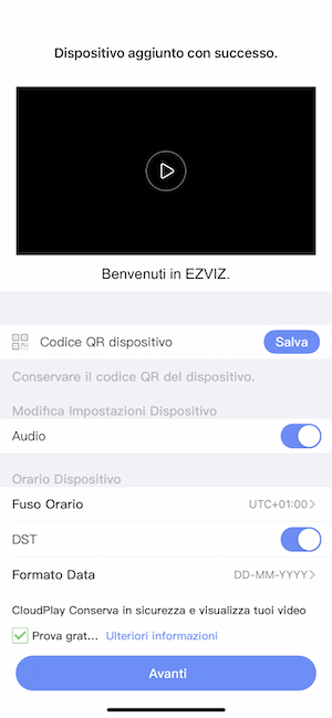 Per i primi 7 giorni avete la possibilità di provare il Cloud di EZVIZ, altrimenti potete scegliere di sfruttare la memoria interna da 32 GB della telecamera.