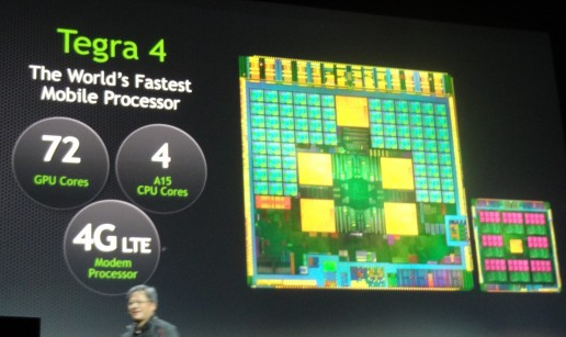 Nvidia annuncia al pubblico, attraverso una conferenza stampa, il nuovo soc Tegra 4. Caratteristica principale è il processore Quadcore Cortex A 15 con GPU da ben 72 core. Nvidia non ha rivelato altri particolari, ma promette faville nei giochi e nella parte fotografica grazie alla funzione HDR integrata.