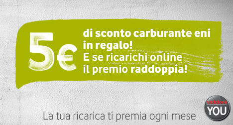 Leggi tuttoNuovo mese e nuovo premio! A maggio con Vodafone YOU basterà ricaricare almeno 10€ per avere in regalo 5 euro di sconto carburante Eni.