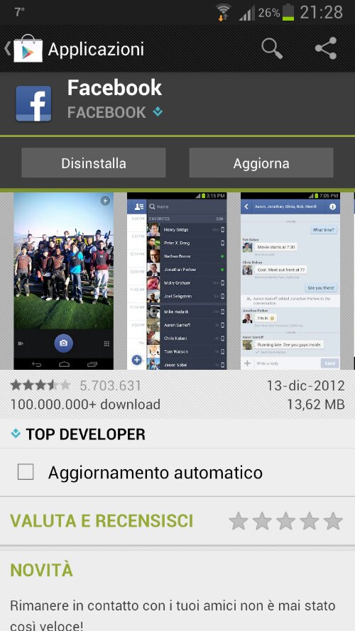 Leggi tuttoFacebook aggiorna la sua applicazione per Android alla versione 2.0 e la rende “nativa”. Adesso la velocità è letteralmente raddoppiata e usare l’applicazione è piacevole come non mai.