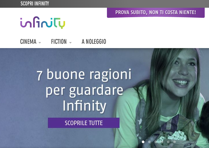 Parte oggi il nuovo servizio di TV On Demand di Mediaset chiamato infinity. Con un canone mensile di 9,90 euro, si avrà la possibilità di vedere film e fiction in streaming senza interruzioni pubblicitarie su TV. Tablet, PC, Playstation e in futuro anche sugli smartphone.