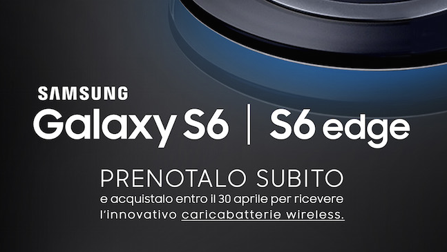 Samsung Italia ufficializza la promozione che ci era stata comunicata durante la fiera MWC15 di Barcellona. A partire dal 16 Marzo, sarà possibile prenotare il nuovo Galaxy S6, sia nella versione classica che nella versione Edge, in tutti i negozi aderenti all’ iniziativa. In omaggio si avrà un caricabatteria wireless.