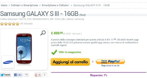 News veloce per segnalarvi una nuova offerta lampo di expansys. Samsung Galaxy S3 nella versione da 16 gb colore Rosso è in vendita a 499 euro!
