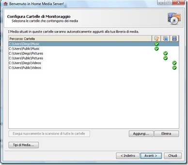 Terminata l’installazione si aprirà la finestra di Windows Media Connect in cui sarà possibile aggiungere le cartelle che si vogliono condividere