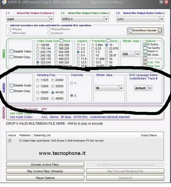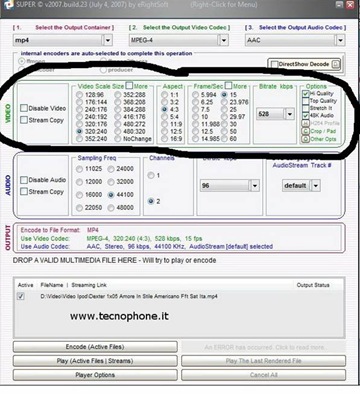Buongiorno, ho scaricato e installato sia il primo super sia quello consigliato successivamente (build.32) ma con tutti e due mi da errore, praticamente imposto tt come scritto sopra poi clicco encoding e parte una prima striscia verde che appena completata lascia il posto all’errore, più o meno è questo: