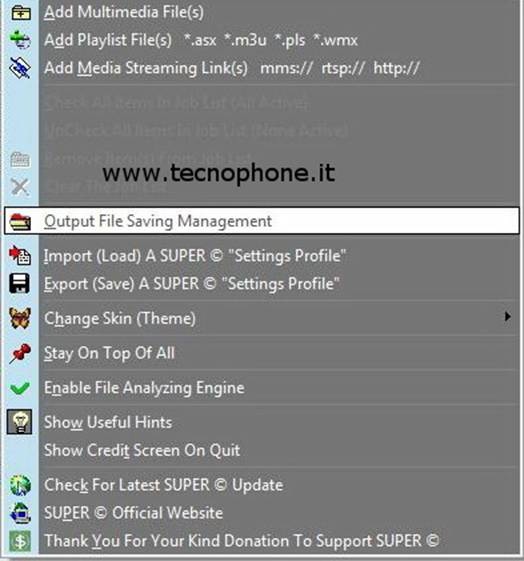 Andate su Output Saving management e selezionate la cartella di default dove verranno slavati i file.Se non sapete dove metterli selezionate Desktop…