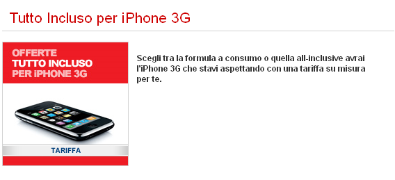 Ho appena ricevuto la mail di notifica della TIM, che mi comunica di andare a scoprire le fantastiche offerte per iPhone 3G..