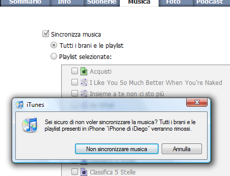 A questo punto, rimettete la spunta su sincronizza musica e sincronizzate!!