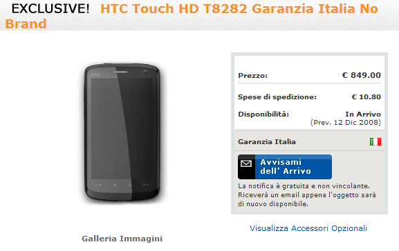 DA come vedete sul banner qui a destra che dice “htc touch pro A SOLI 769” euro, è ovvio che l’hd non costerà meno di 800 euro. Almeno in italia!