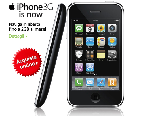 Come già annunciato Vodafone renderà disponibile iPhone 3G anche per tutti i clienti privati che intendono mantenere il proprio piano telefonico sia ricaricabile che abbonamento a 499 euro per la versione 8GB e a 569 euro per la versione 16GB.