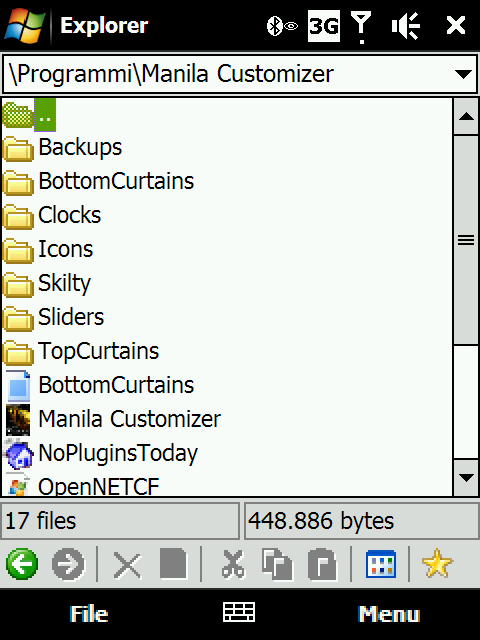 raga’, io ho seguito le indicazioni su Manila Customizer, ho copiato tutti i file nella memoria interna, proprio come diceva Diego, pero’ nella cartella programmi l’icona non c’è:nella cartella della memoria interna il file di setup di manila ha l’icona di Opera, se ci clicco sopra si apre il browser di Opera e dopo pochi secondi si apre una videata tutta bianca con un piccolo trinagolo bianco in basso a destra.Dove ho sbagliato?Grazieeeee