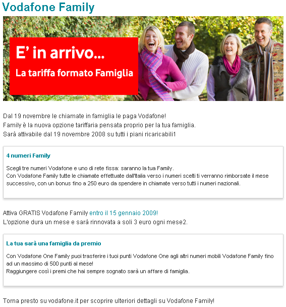 Dal 16 Novembre al 15 Gennaio 2009, si potrà attivare la nuova tariffa Vodafone Family!!