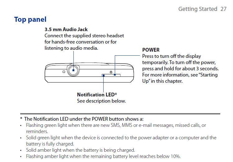 - Luce verde lampeggiante :segnala nuovo SMS, MMS o Email, chiamate perse e promemoria