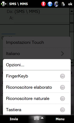 Scrivete un nuovo sms, cliccate sulla freccia in basso per fare apparire il menù della tastiera, premete altri metodi immiss. e selezionate FingerKeyB
