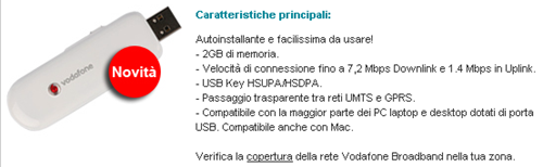 Vodafone propone solo una chiavetta Modem USB, la Vodafone Key