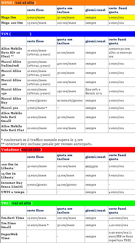 complimenti diego post veamente utile! soprattutto a me che devo consigliare una connessione internet su chiavetta a mia sorella!