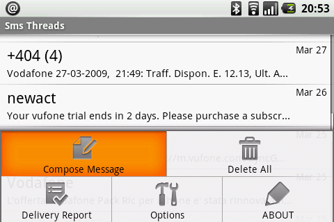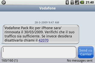 Grafica in puro stile iPhoniano, per la precisione è la copia esatta di BiteSms.