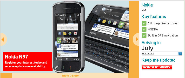 Sul sito Inglese Vodafone UK è apparso il Nokia N97