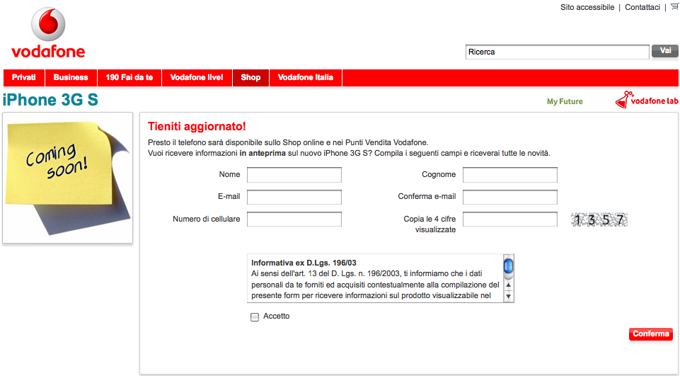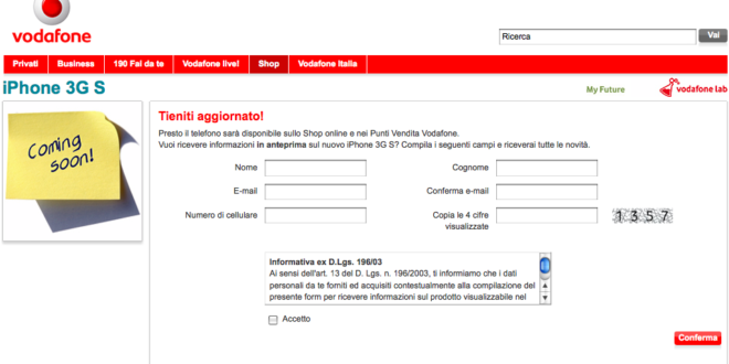 Vodafone Italia ha comunicato che sarà uno dei primi gestori a commercializzare il nuovo iPhone 3Gs