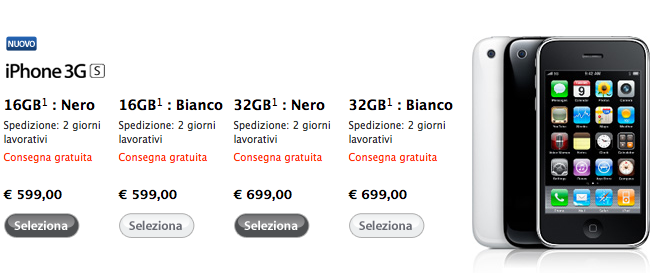 L’ amico Franklin mi segnala la presenza del nuovo iPhone 3Gs nello store OnLine di Apple.
