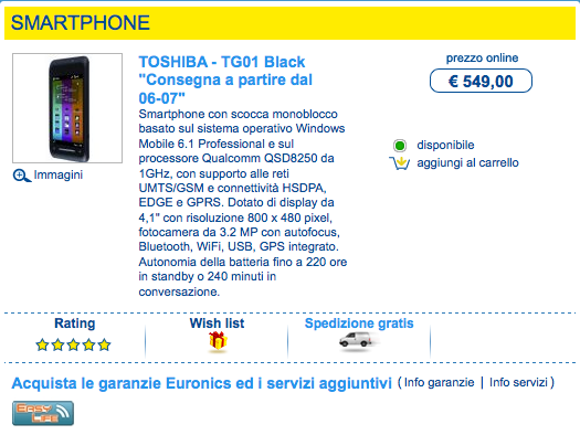 sono dubbioso, ho appena acquistato un htc g1, sicuramente mi prendo un palm pre, però un terminale con schermone e processorone mi interessa molto :ops