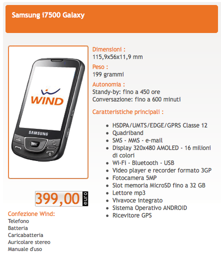 A sorpresa il carrier Italiano wind inserisce nel suo listino il nuovo Samsung Galaxy.