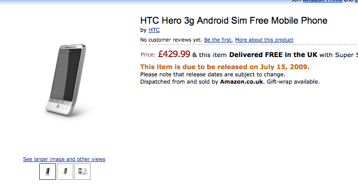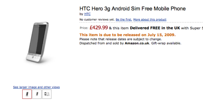 Il nuovo HTC Hero appare nello Shop Online Amazon UK.