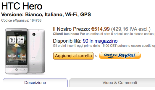 La colpa è dell’ amico EriKVII, mi ha inviato il Link del SonyEricsson e poi sono andato a curiosare un pò la situazione di HTC HERO su Expansys..