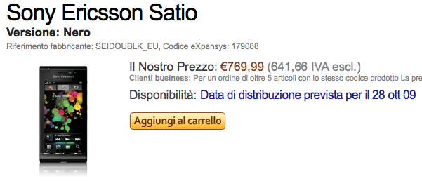 ma infatti ci si lamenta anche del Satio..ma pensando che è in prepreordine e che da expansis soprattutto in qiesti casi la sparano grossa secodo me in italia sarà a 599 o 649 al massimo…certo avrà un camera notevole sicuramente anche se 12 mxp sono già un po troppi e il flash allo xeno perciò qualcosa in più dell’iphone ce l’ha.. :rotfl: ma quel prezzo è sicuramente fuori. a 599 già andrebbe anche bene(anche se comunque non lo comprerei mai) ma sopra i 700 vuol dire che non vogliono cercare di sdondare e catturare solo gli appassionati del marchio..