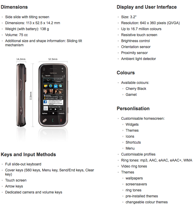 Terminale con le forme del fratello maggiore N97, ma con display da 3,2 pollici e dimensioni ridotte.