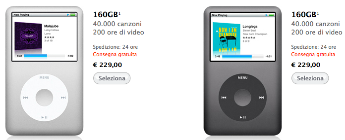 Rimane in commercio iPod Classic, adesso ad un prezzo di 229 euro con 160 GB di Hard Disk
