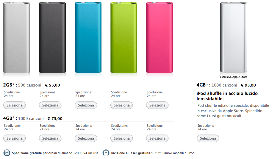 Inseriti nuovi colori per iPod Shuffle e ritoccati i prezzi :