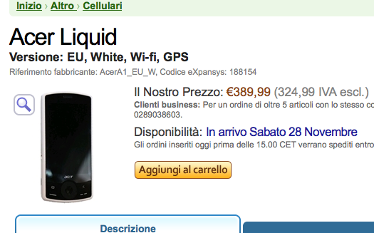 Il prezzo del nuovo ACER Liquid è di 399 Euro.