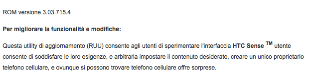 Comme potete vedere, nelle informazioni viene specificata la presenza della HTC Sense!