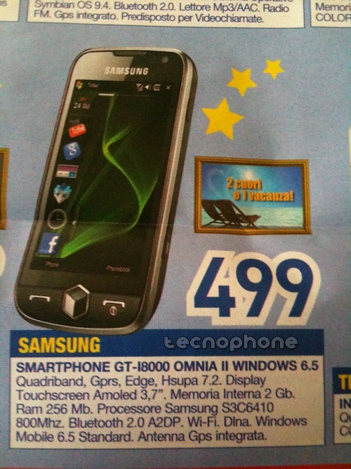 In bella mostra abbiamo il Samsung OMNIA II al prezzo di 499 €!