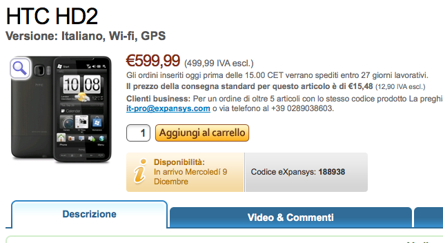 La versione Italiana costa 599€, ma la data di arrivo stimato è stata spostata addirittura al 9 Dicembre!