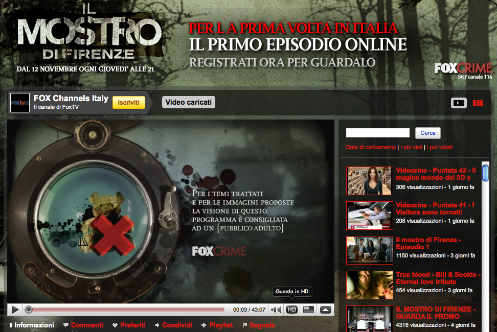 Da segnalare la nuovissima mini-serie Il Mostro di Firenze, di cui è già presente online il primo episodio.