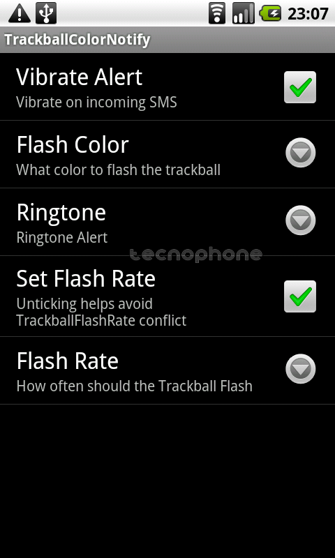 Possiamo personalizzare la colorazione della trackball e impostarla per Sms e Mms