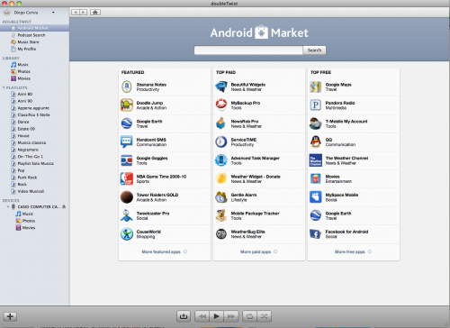 La versione MAC ha introdotto la possibilità di navigare nel Market di Android