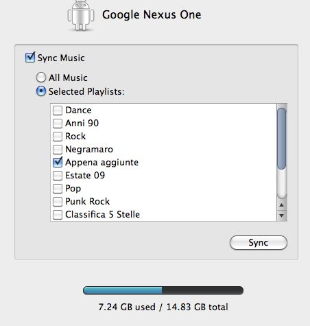 Una volta scelto cosa sincronizzare, colleghiamo il dispositivo e premiamo SYNC