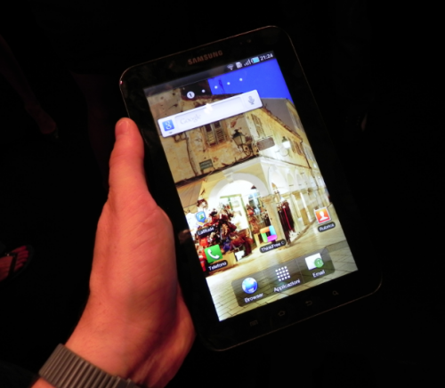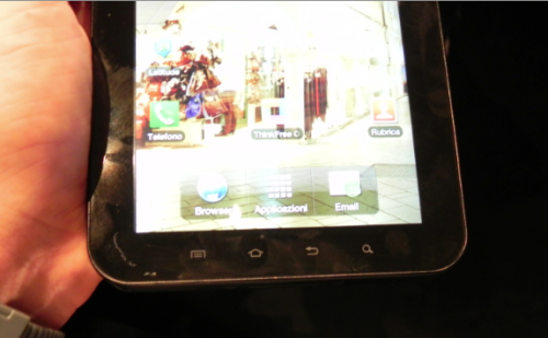 Il Galaxy Tab lo si può usare come telefono, ma solamente con auricolare a filo o BT. Se lo portate all’ orecchio non sentirete nulla 😀