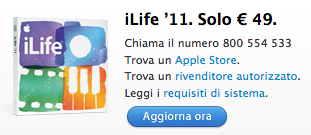 iLife 11 costa 49 euro per chi vuole aggiornare la versione precedente (iLife 10), mentre è gratuita per chi acquista un MAC nuovo.