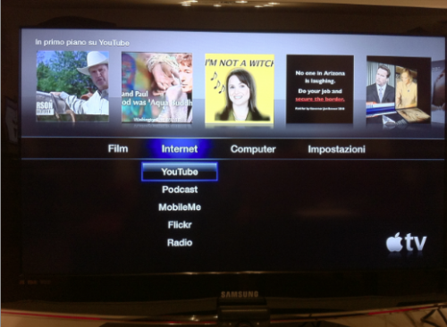 Nel menù della Apple TV è presenta anche la Voce Internet.