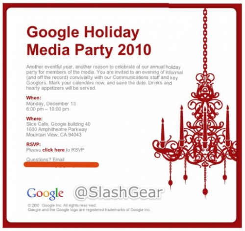 Nell’ invito vi è scritto che si tratta di un “Holiday Media Party” con la possibilità di incontrare tutto lo staff di Google.