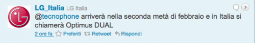 Apro una piccola parentesi sul nome, LG Italia ha comunicato che il terminale verrà venduto in Italia con il nome di Optimus Dual e non 2X.