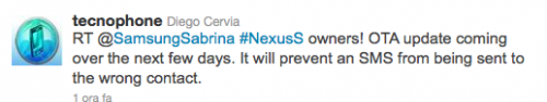 Samsung, tramite twitter, ha annunciato che nei prossimi giorni è in arrivo un aggiornamento OTA ai possessori di Google Nexus S.