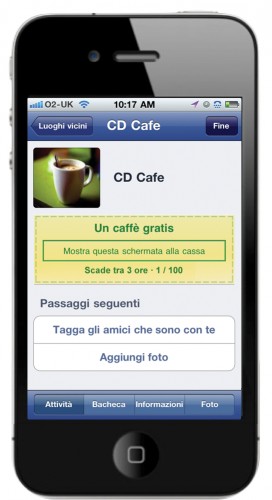Milano, 31 gennaio 2011 – Facebook annuncia oggi la disponibilità di Deals in Italia, la nuova funzionalità che permette tramite smartphone di usufruire di sconti e promozioni o ottenere premi offerti da prestigiosi marchi, grazie a un semplice check-in.