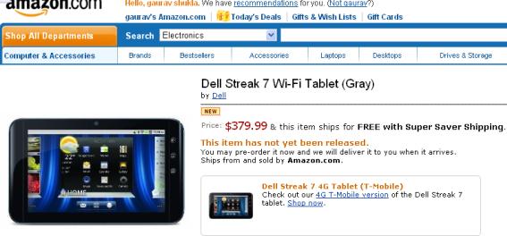Dell ha previsto una variante più economica del suo Tablet Streak 7.