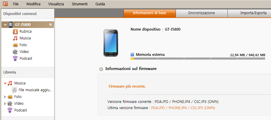 Innanzitutto assicuriamoci di avere installato sul nostro PC l’ultima versione di Samsung Kies.