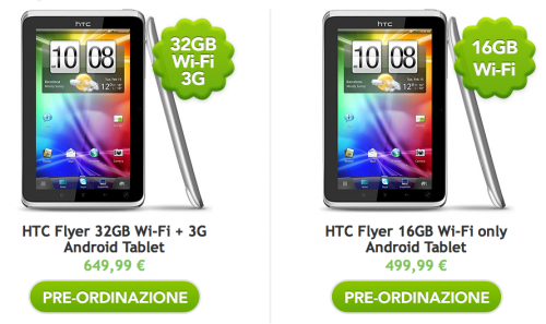 Si possono prenotare nello shop dedicato Htc Flyer Store